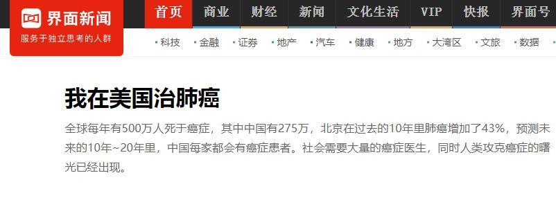 1、界面新闻 《我在美国治肺癌》